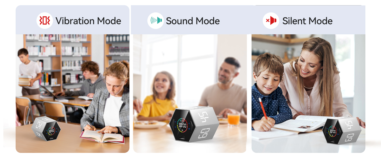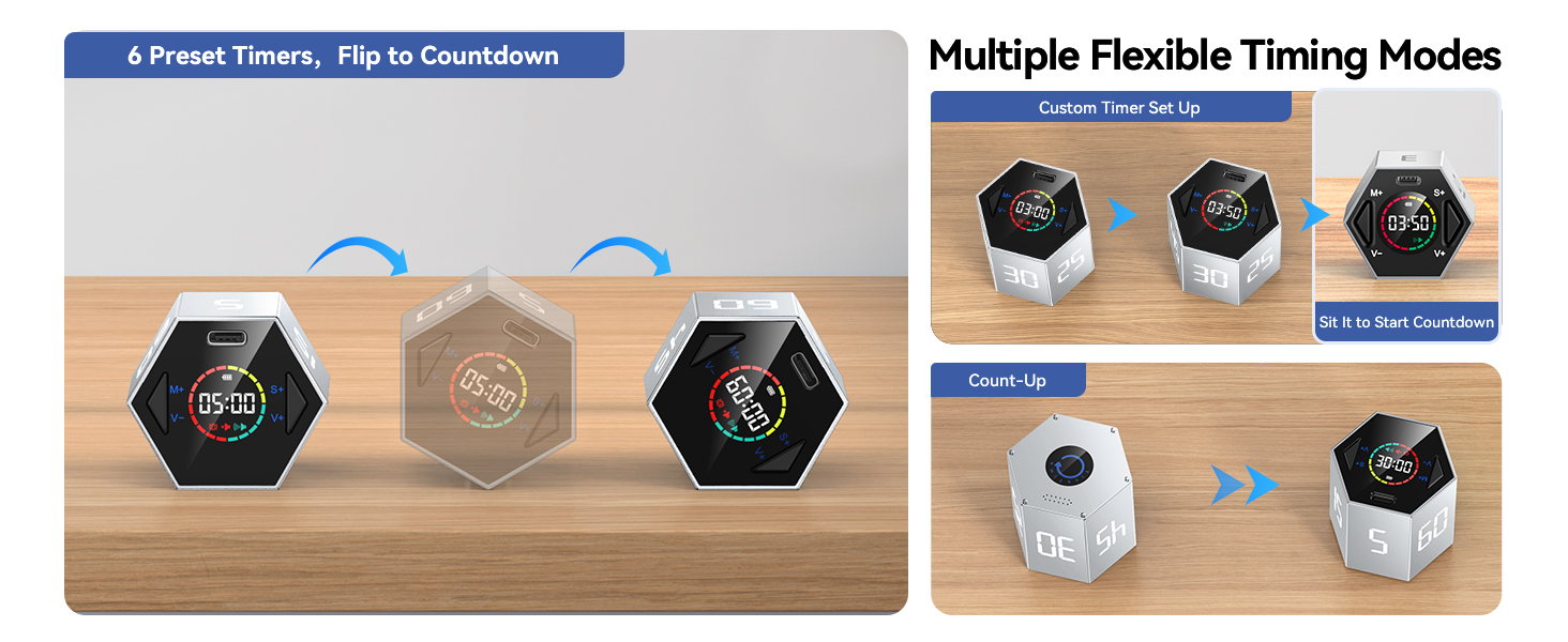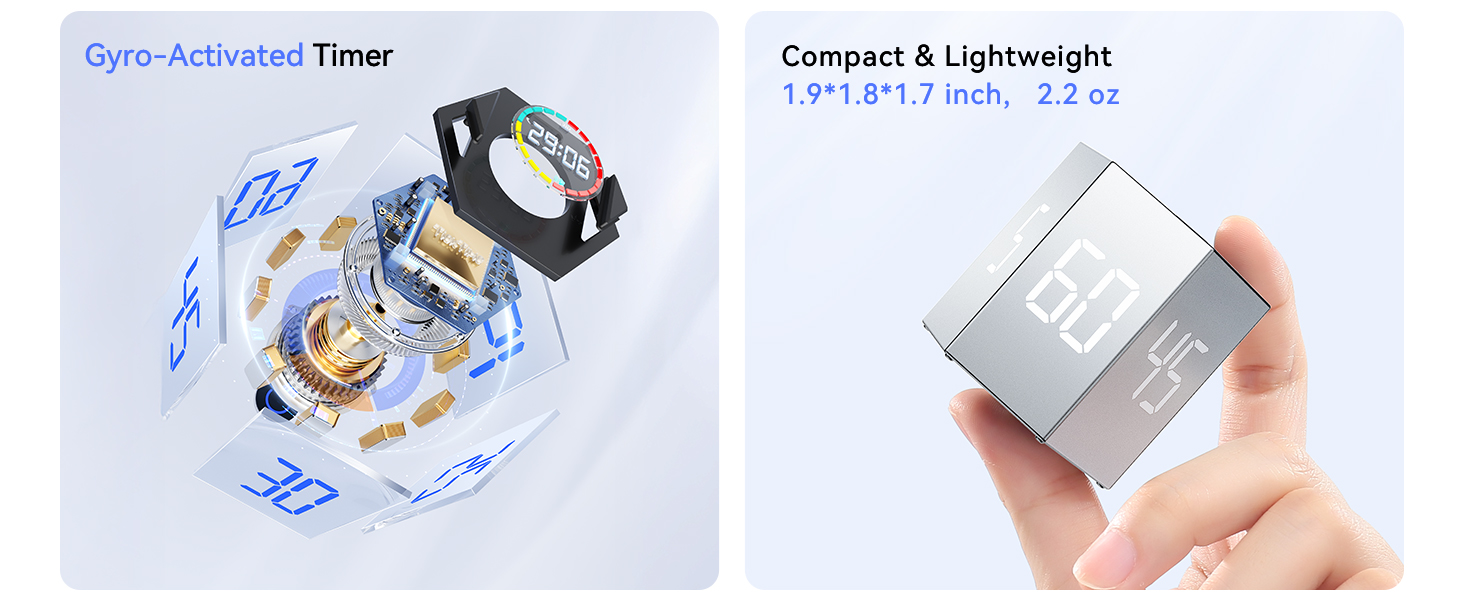 Ticktime Pomodoro Timer, Productivity Timer Cube, 5/15/25/30/45/60 Min Presets, Custom Countdown & Stopwatch 1s–99m59s, Sound/Vibration/Silent, Magnetic, Rechargeable, for ADHD Study Work, Silver