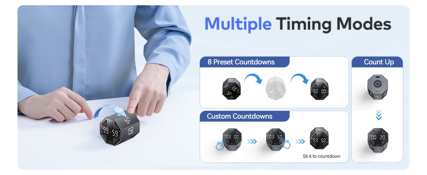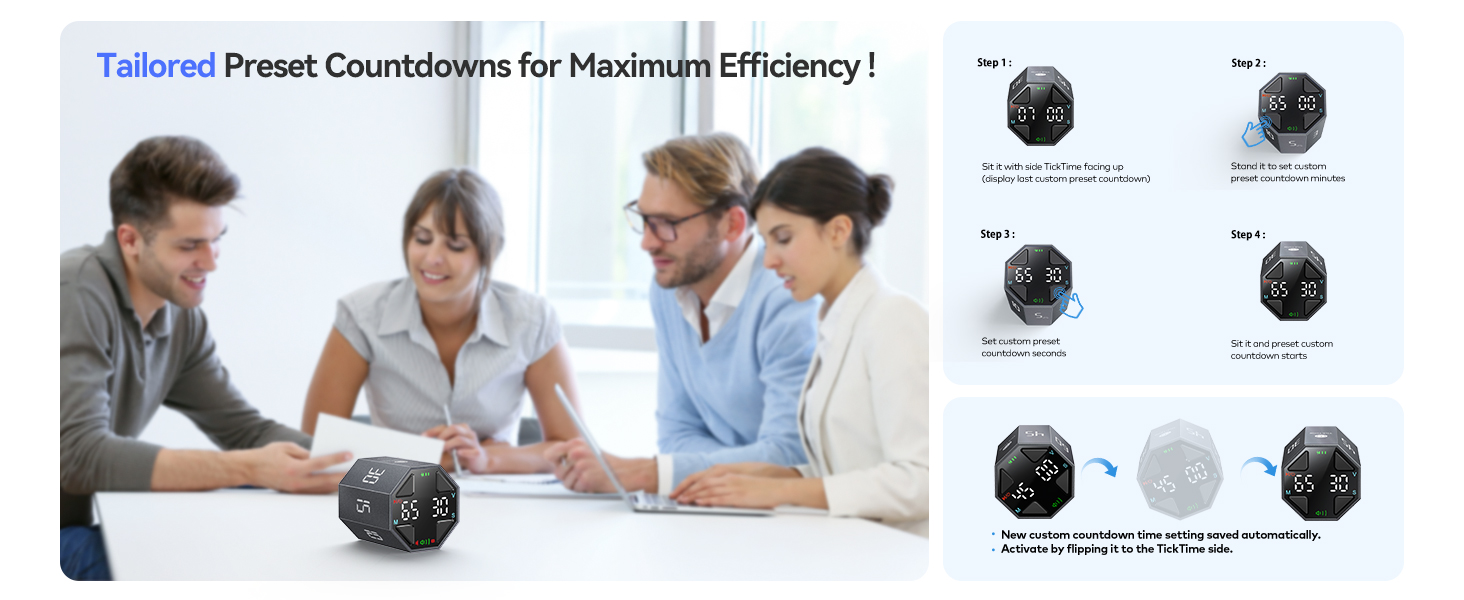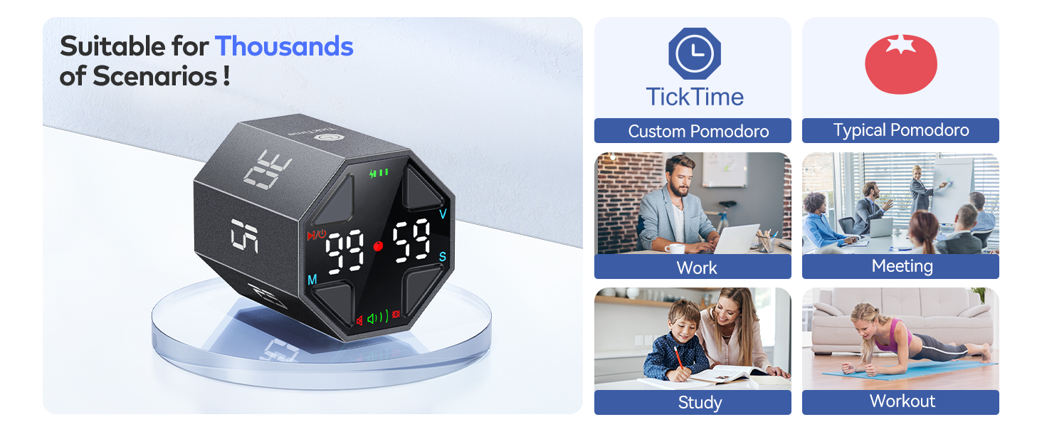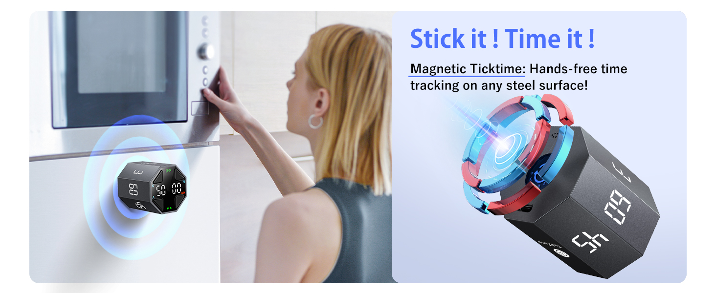 Ticktime Pomodoro Timer, Productivity Timer, Typical & Customizable Pomodoro, Quick-Flip Countdown, 3/5/10/15/30/45/60Min Presets, Stopwatch, Rechargeable, Silent, Sound & Vibration, Magnetic, Black